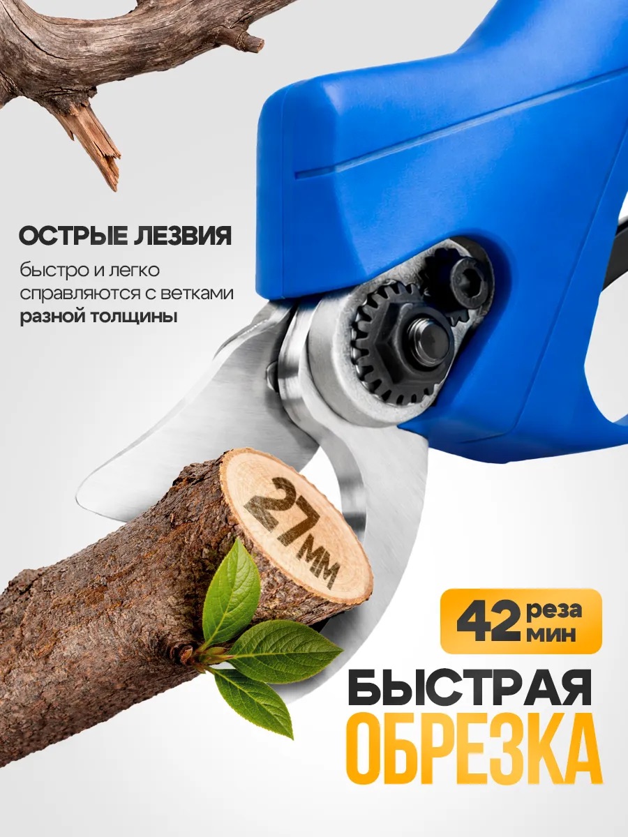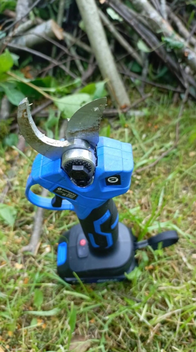 100% медная обмотка обеспечивает стабильную мощность и высокий крутящий момент. Секатор режет ветки до 25–30 мм уверенно, без рывков и просадок.