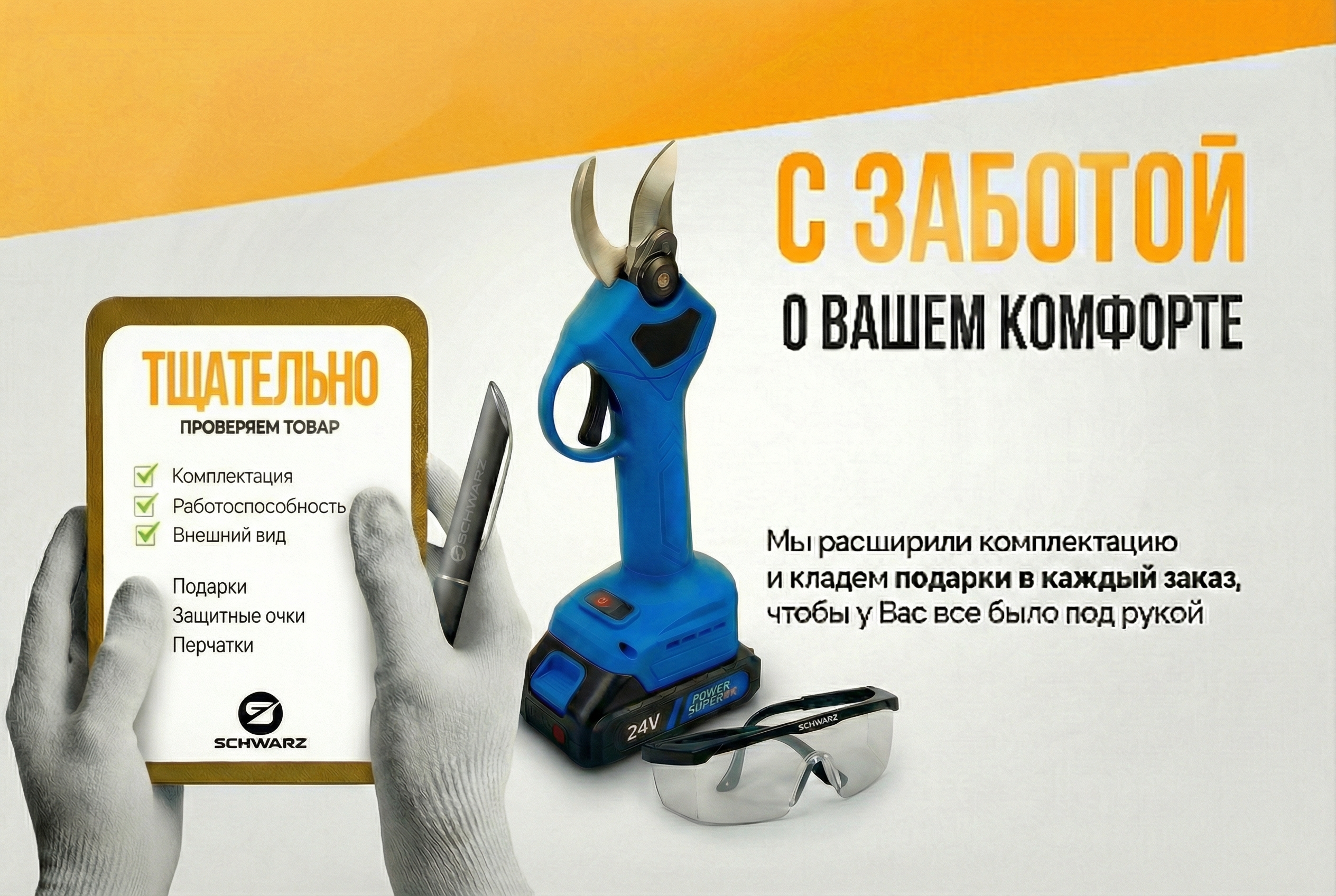 Аккумуляторный секатор SCHWARZ для дома и дачи